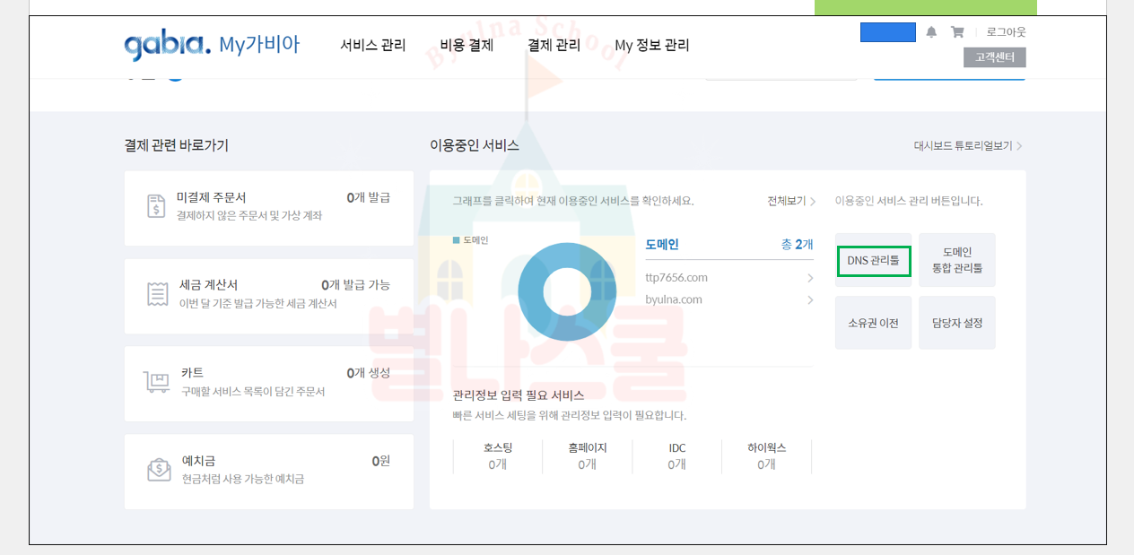 관리 페이지의 우측에 보면 DNS 관리툴이라는 메뉴가 보입니다. 선택합니다.