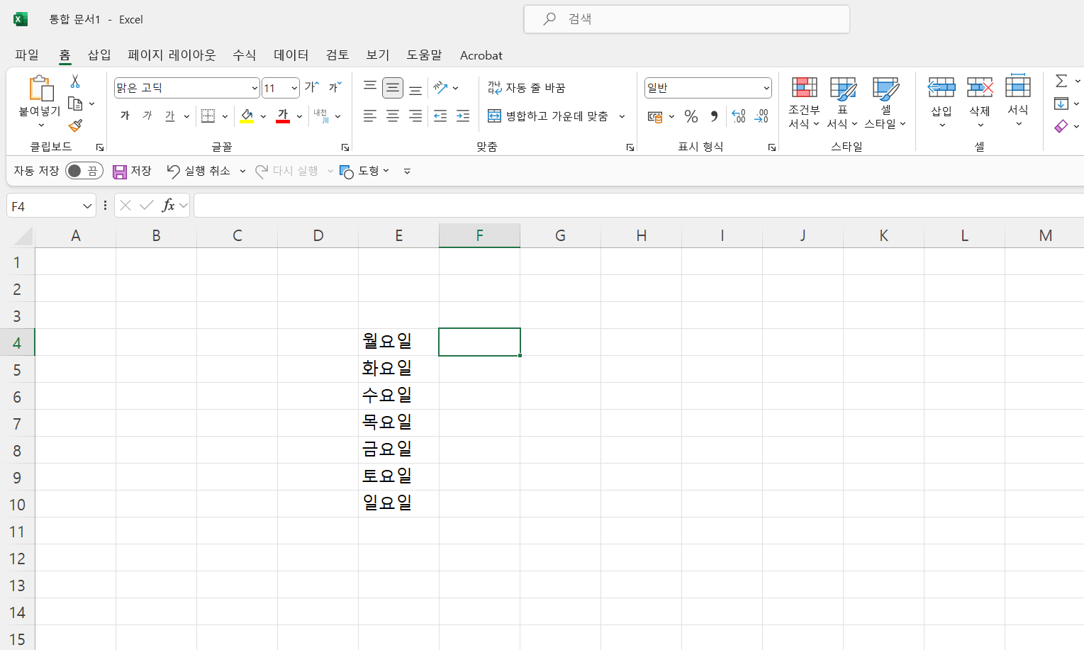 위처럼 데이터가 한 번 입력이 되어있다면 다음 셀에 "월" 만 입력해도 요일은 자동으로 작성되어 엔터만 입력하면 적용이 됩니다.