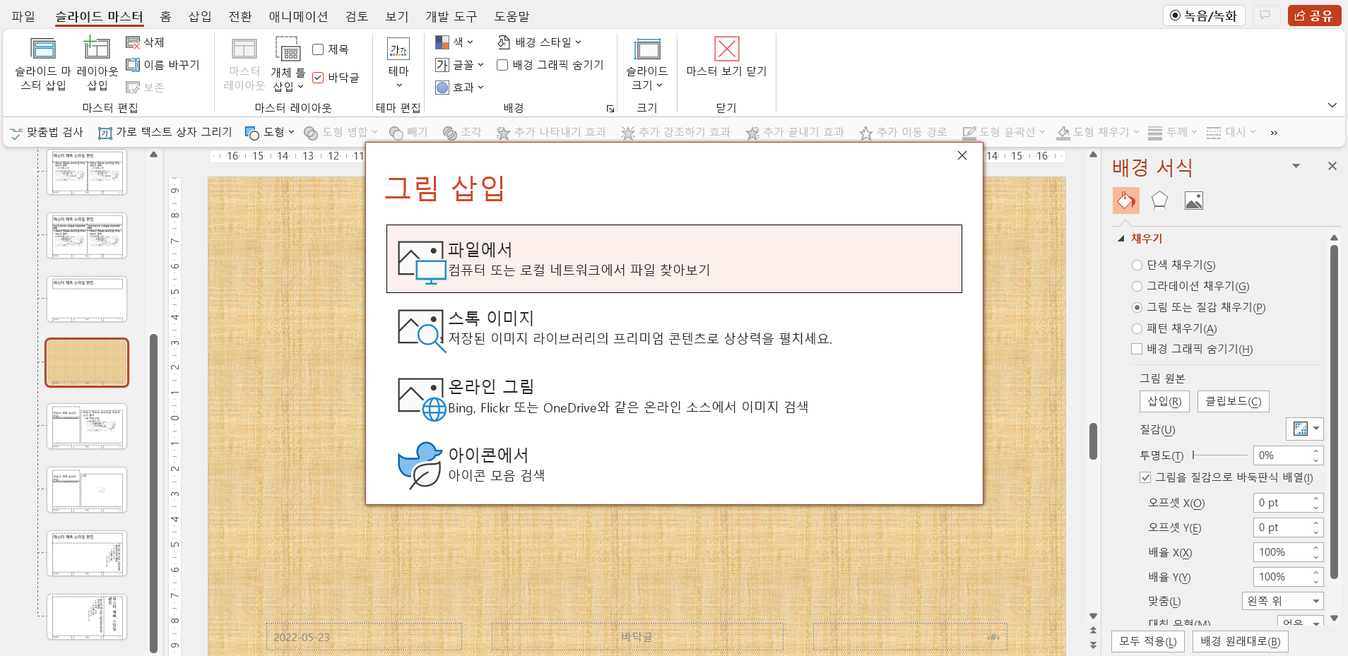 그림 또는 질감 채우기를 선택하면 그림 삽입을 할 수 있으며 원하는 이미지를 선택합니다.